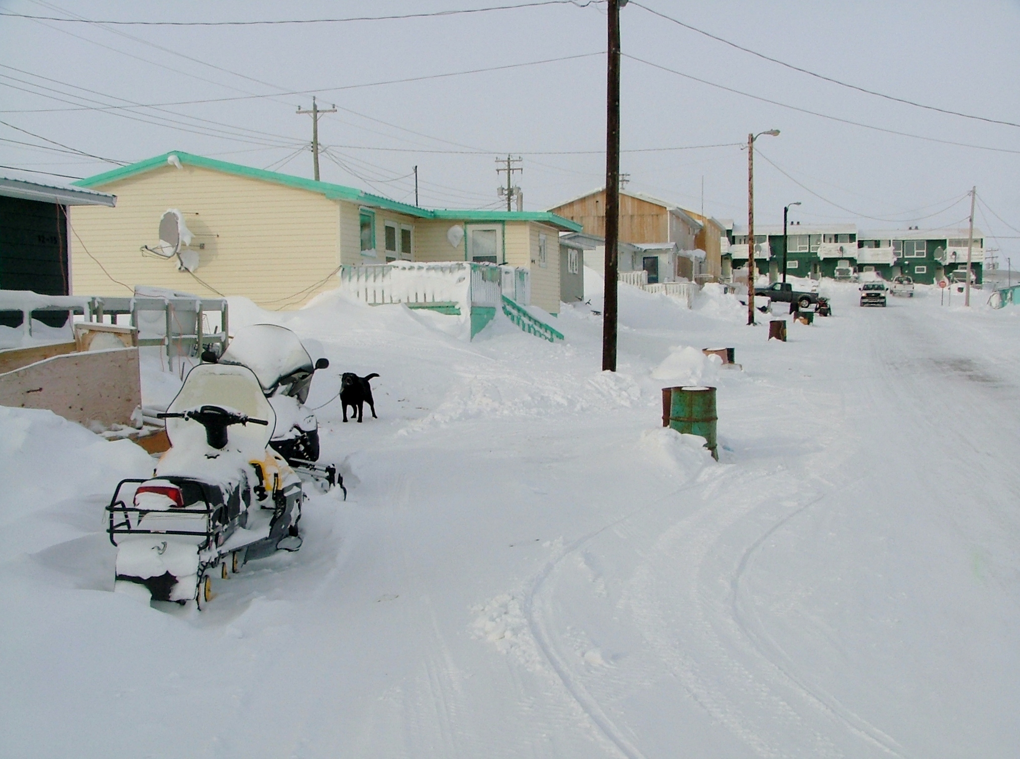 This may certainly appear inefficient and perhaps ergonomically challenging to us southerners. (In this part of the country, Edmontonians are "southerners"). In the north, the communities have to deal with the cards that are dealt to them, so because of limited financial resources, they have to manage things in the best way possible. Empty 45 gallon drums are plentiful and because they don't get recycled, they get used. I did not see any garbage cans in the local stores either. Jobs are scarce, so if it takes longer to collect the waste, they community is at least creating work for a few of the residents. As I learned in a residential waste collection project I was involved in for the Bahamas a few years back - an inefficient collection system creates employment for those that need it.